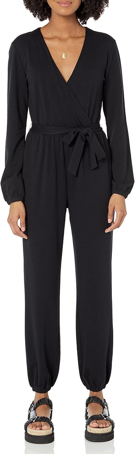 Elevate your wardrobe with these black knit surplice women’s pants. Featuring a flattering surplice design and comfortable knit fabric, these pants offer both style and comfort. Perfect for casual wear or dressy occasions, they provide a sleek silhouette that complements any outfit. The versatile black color makes them easy to pair with various tops and accessories.