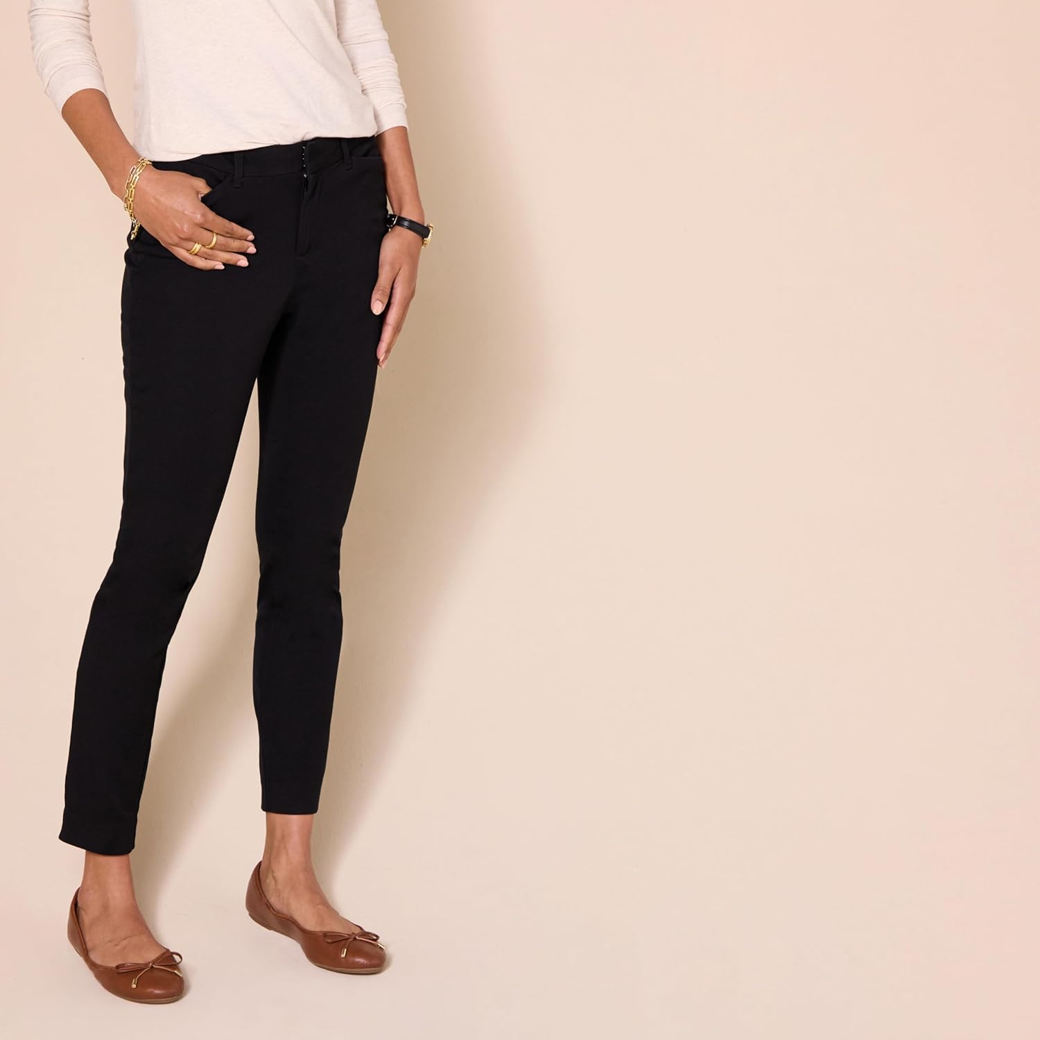 These black skinny ankle pants are a solid addition to my wardrobe. The stretch fabric is comfortable and moves well throughout the day, though I wish it had a bit more structure. I’m 5’6″ and the ankle length hits perfectly – not too short, not too long. The slim fit is flattering without being too tight. At $26.80, they’re reasonably priced for the quality. I ordered a size 6 and they fit true to size. Perfect for casual Fridays or weekend outings. Would recommend for the price point.