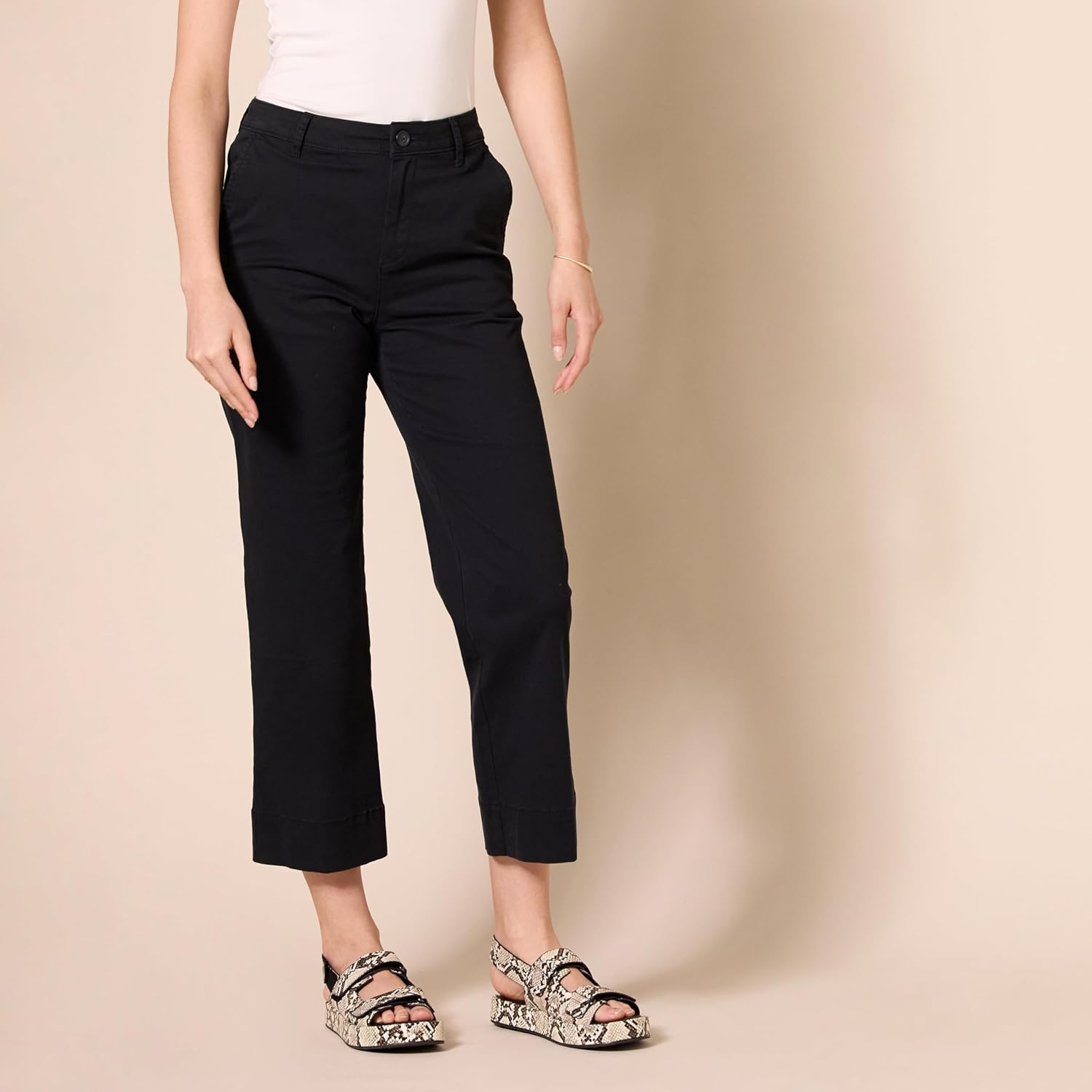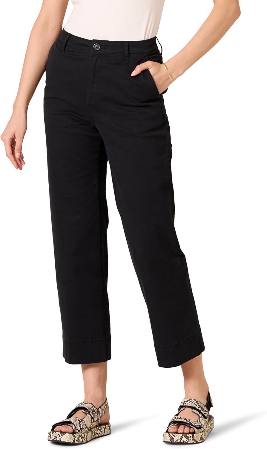 I picked up these black high-rise wide-leg khaki pants from the home depot clearance section and they’re surprisingly well-made for the price point. The fabric has a nice weight to it, not too thin or flimsy. The slim-fit through the hips transitions nicely into the wide-leg design. I’m 5’6″ and the ankle length hits just right. Very comfortable for work or casual outings. The only minor issue is that the black color shows lint easily, but overall great value for $21.