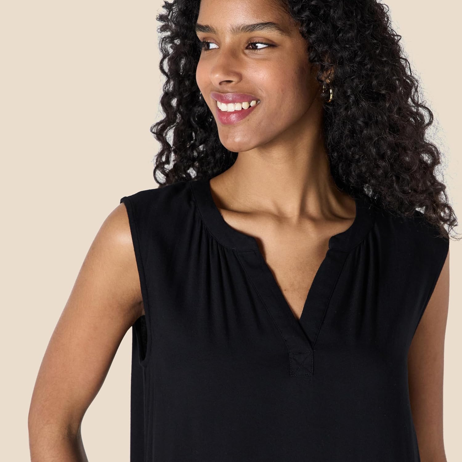 Elevate your wardrobe with this sleek black sleeveless shift dress. Perfect for women seeking a versatile, woven design that transitions seamlessly from day to night. The comfortable fit and timeless style make it an essential addition to any fashion-forward closet.