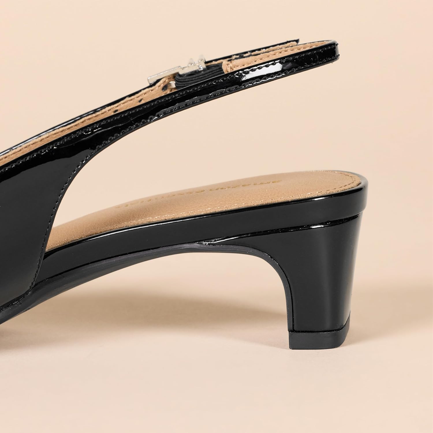 Elevate your style with these black slingback block heels for women. Perfect for work, parties, or casual outings. Features a comfortable block heel design with adjustable slingback strap for secure fit. Versatile black color complements any wardrobe. Shop now for quality women’s heels.