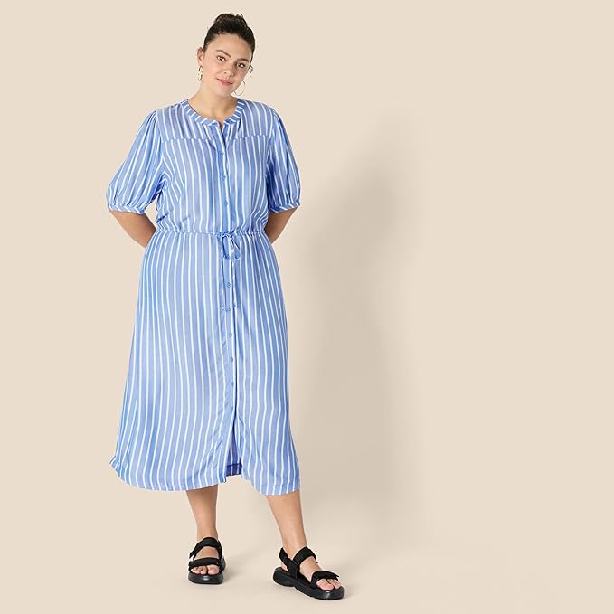 I’m really happy with this blue and white midi dress! The relaxed fit is super comfortable and the A-line silhouette is flattering on my figure. The half sleeves are perfect for transitional weather. Material feels decent for the price point, though it’s not the thickest fabric. True to size – I ordered a medium and it fits just right. Great value for $19, especially since I can dress it up or down. Perfect for casual outings or even work with the right accessories.