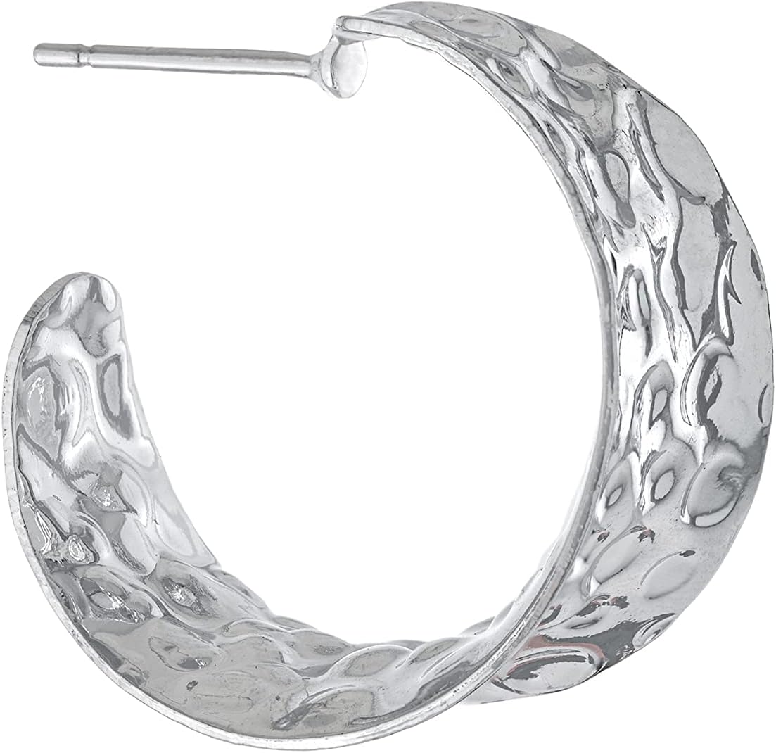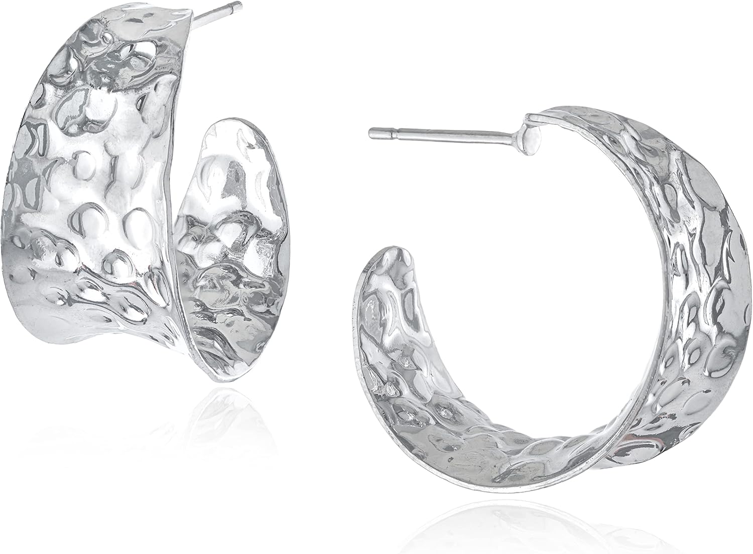 These silver hoop earrings are exactly what I was looking for! The hammered texture gives them a nice modern look, and at 25mm they’re the perfect size – not too big, not too small. The post backing is secure and comfortable for all-day wear. I’ve worn them to work and out for dinner, and they’ve held up well so far. Great value for the price point, especially compared to other jewelry I’ve bought recently. Would definitely recommend for anyone wanting versatile everyday hoops.