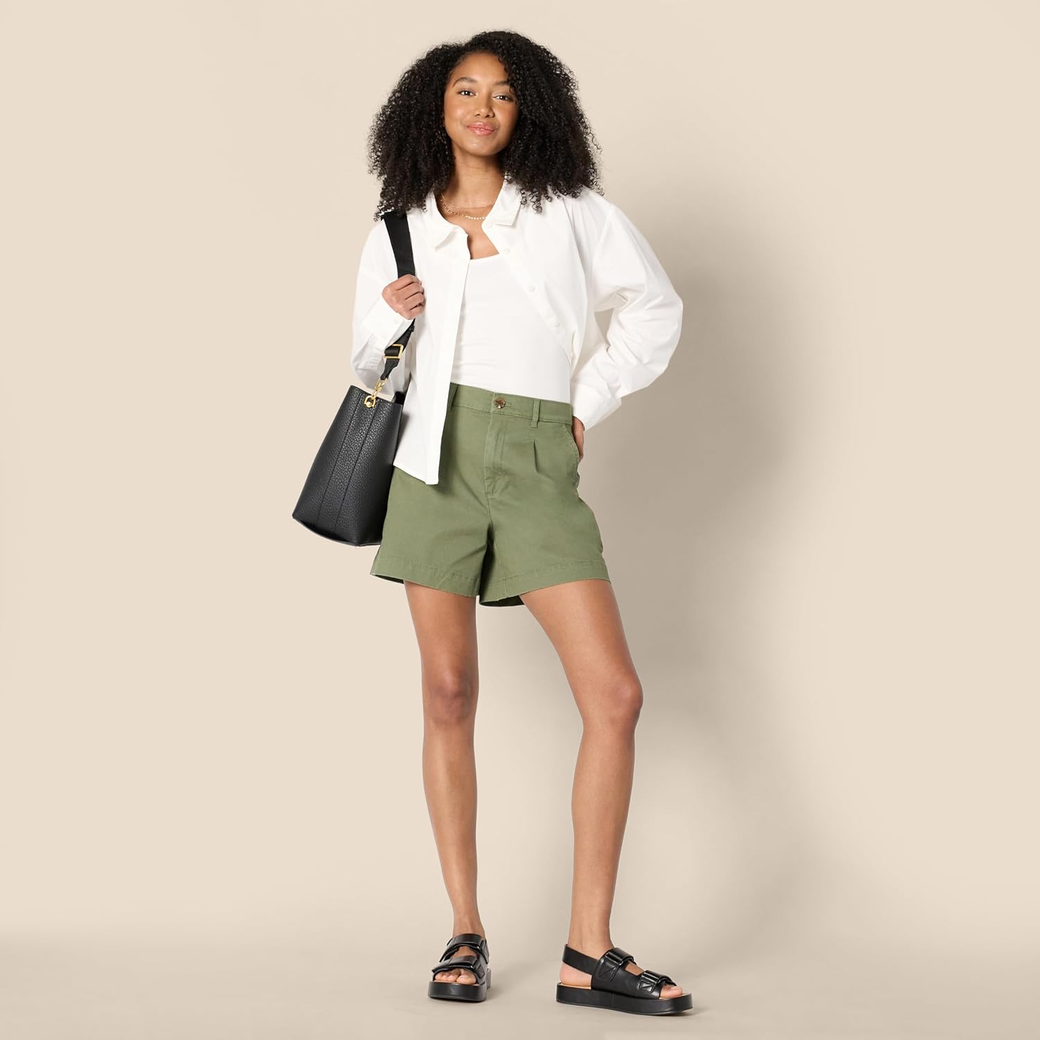 1 review for Womens High-Rise Relaxed-Fit Elastic Back Shorts Dark Olive