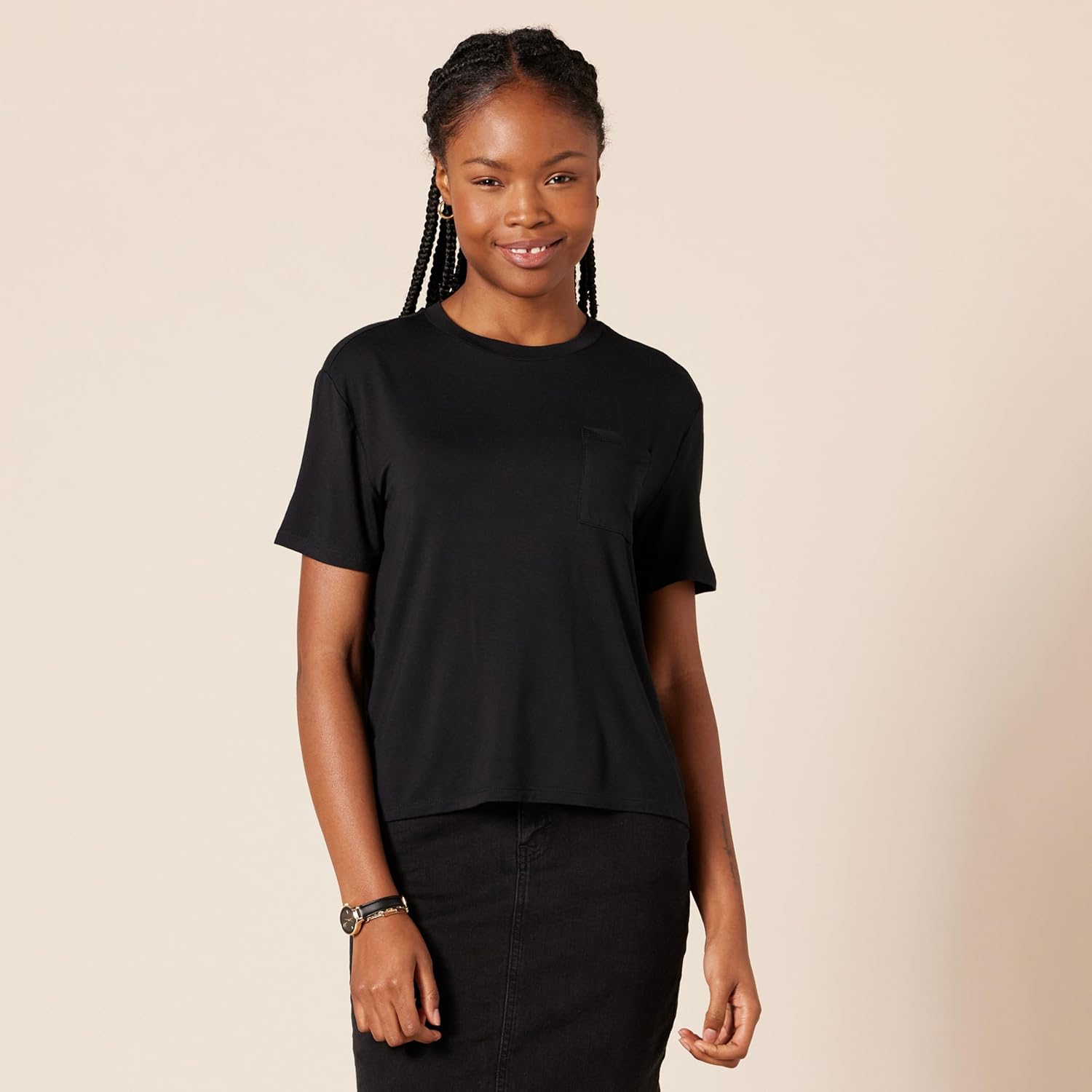 1 review for Womens Jersey Relaxed-Fit-Sleeve Crewneck Pocket T Shirts Black
