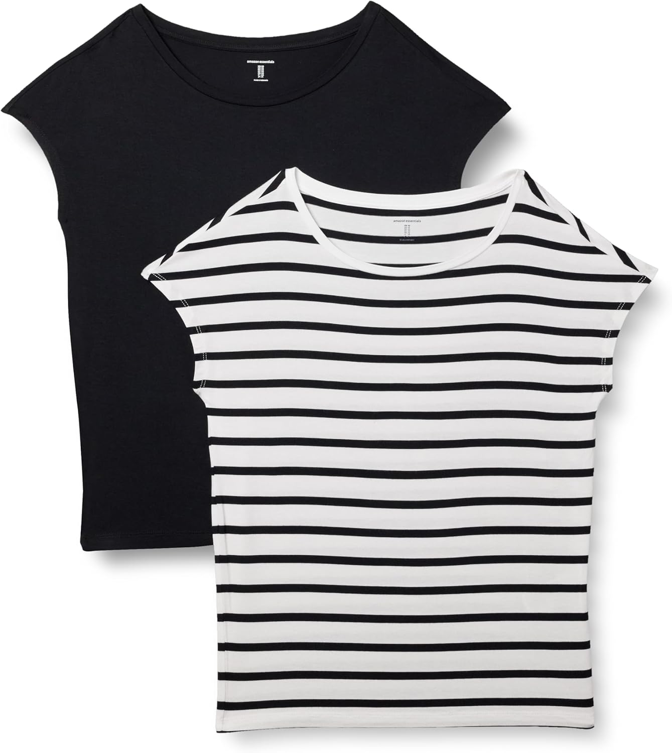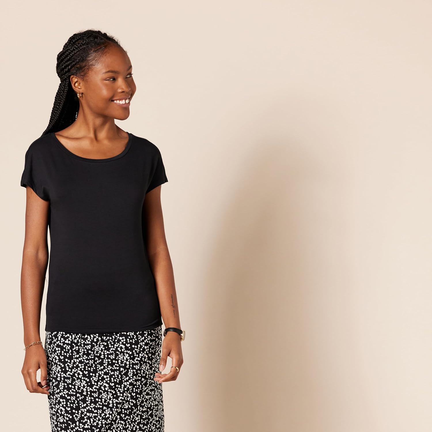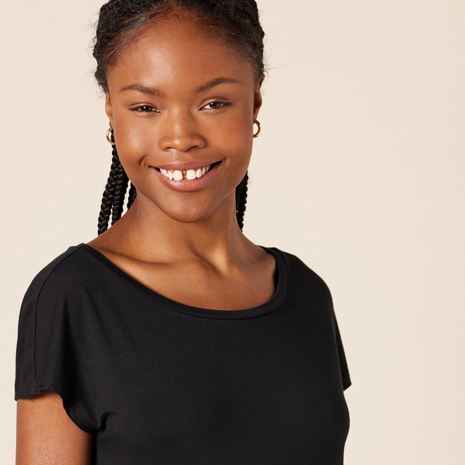 1 review for Womens Jersey Standard-Fit-Sleeve Boat-Neck T Shirts Black / White