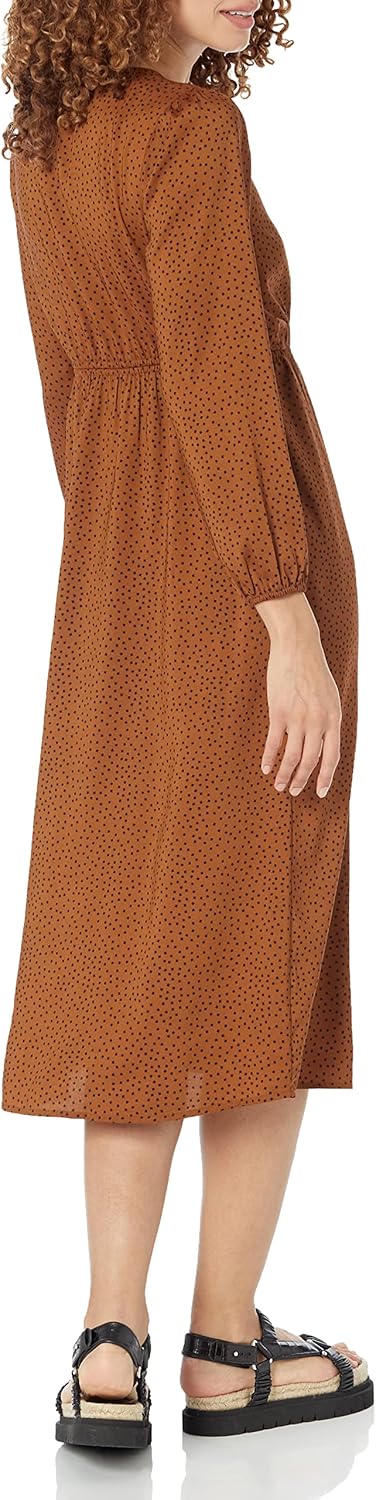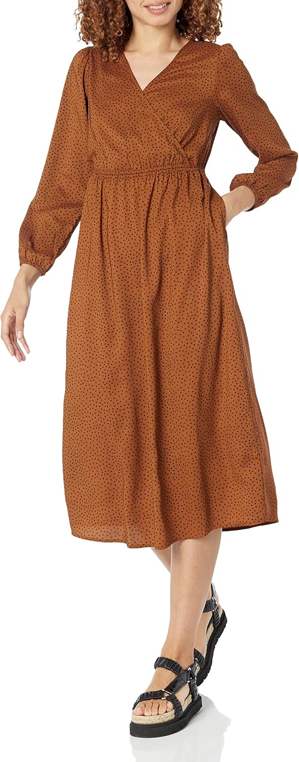 1 review for Womens Lightweight Georgette Long Sleeve V-Neck Midi Dress Dark Brown
