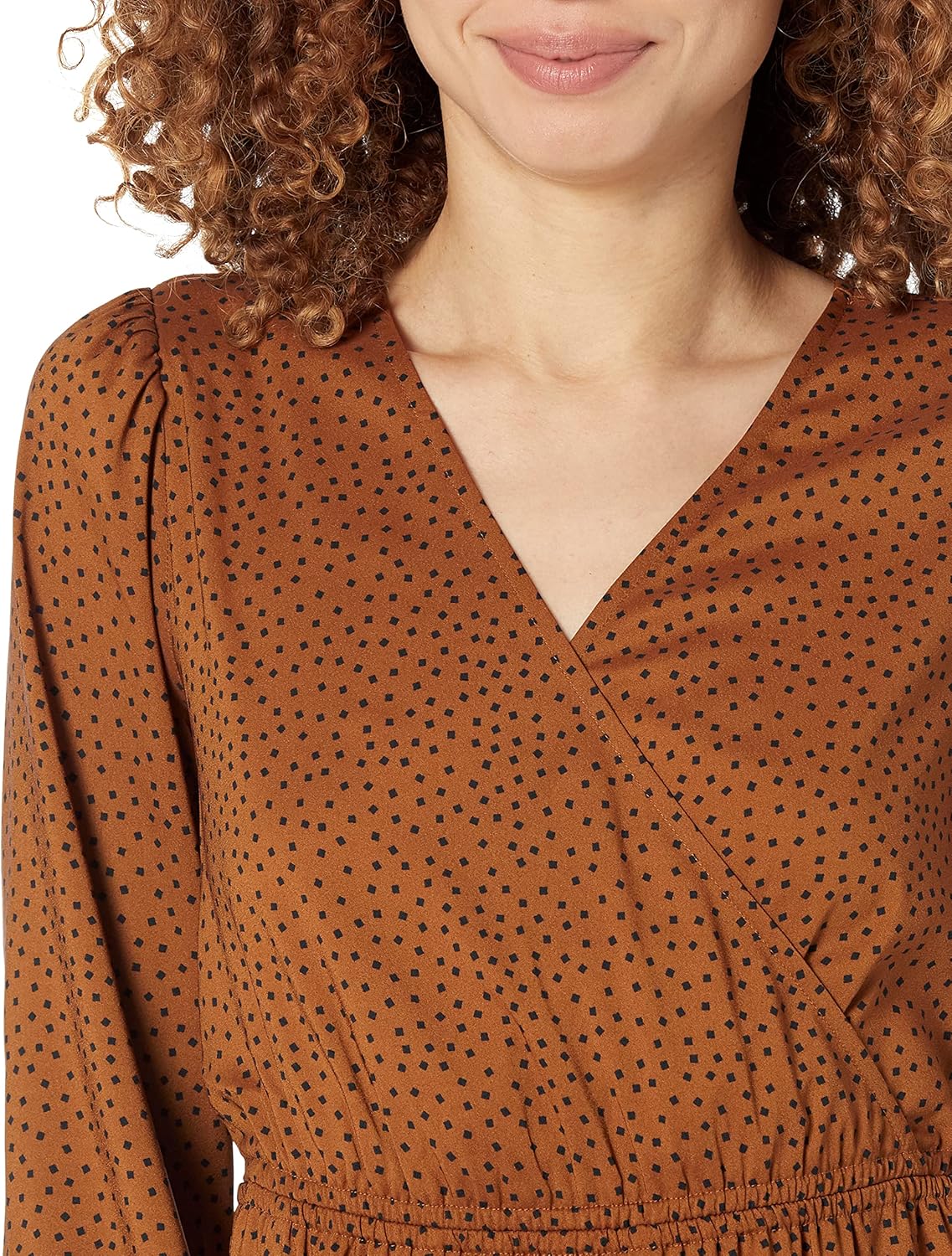 Womens Lightweight Georgette Long Sleeve V-Neck Midi Dress Dark Brown